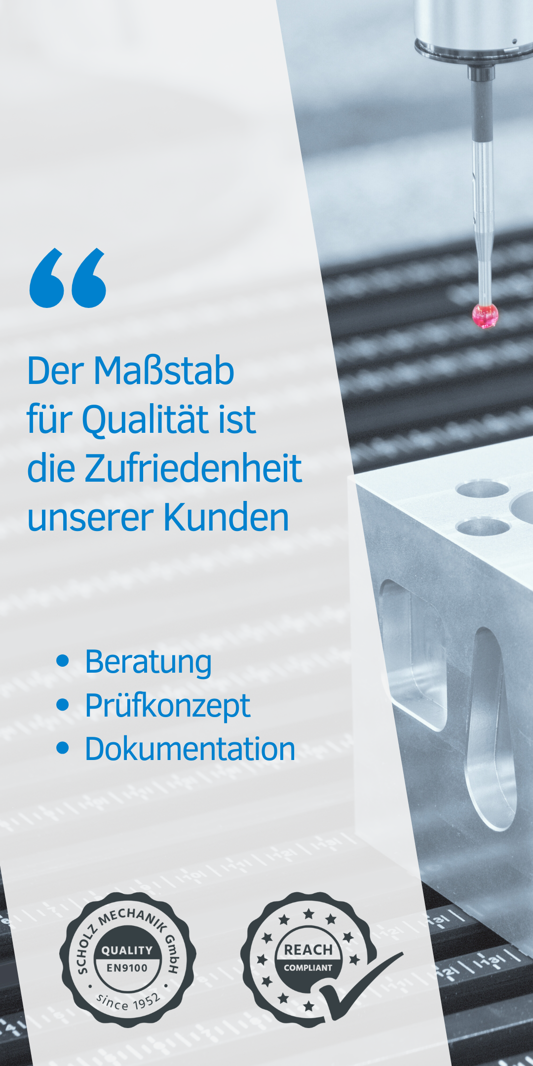 Mit SCHOLZ MECHANIK GmbH haben Sie einen Partner an Ihrer Seite, der Qualität nicht nur verspricht, sondern selbst lebt. Lassen Sie uns Ihre Bauteile prüfen und profitieren Sie von unseren umfassenden Möglichkeiten und unserer langjährigen Erfahrung.