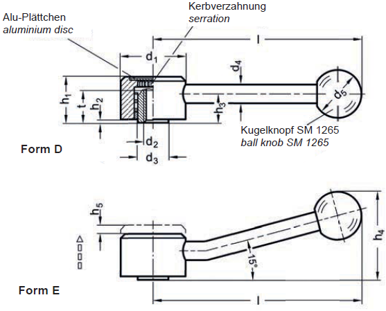 Besonderheit: | Feststellen durch selbstständiges Einrasten, Hebel gerade, Hebel schräg, mit Innengewinde |