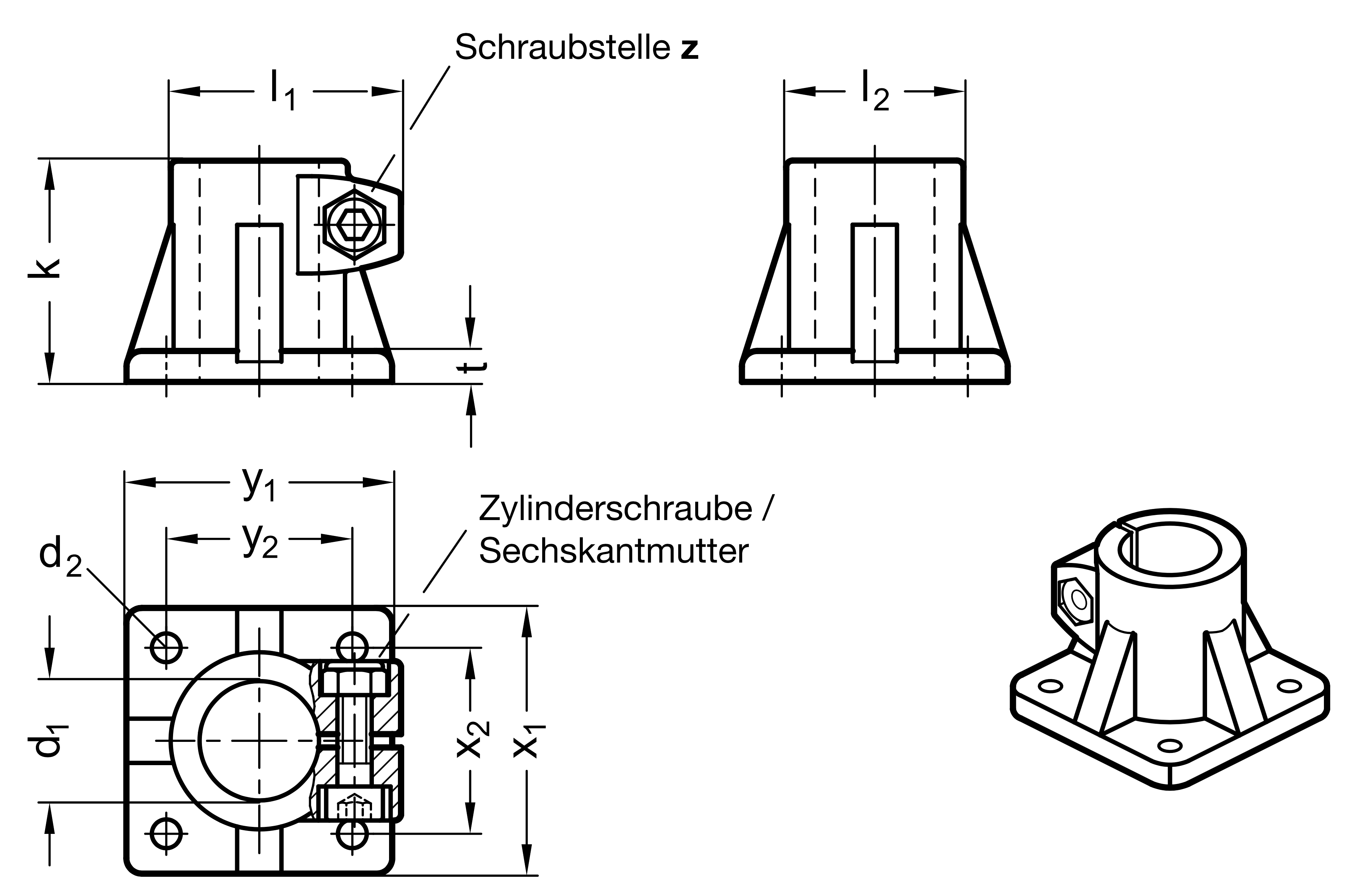 An der Schraubstelle z verkleinert die Zylinderschraube DIN 912 den Bohrungsquerschnitt zum Klemmen.
