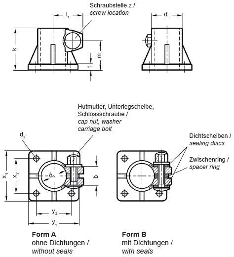 An der Schraubstelle z verkleinert die Schlossschraube und Hutmutter den