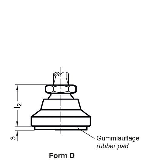 mit Verstellspindel aus Edelstahl und Kunststofffuß Material:Fuß: Kunststoff (Polyamid PA)  glasfaserverstärktschwarz, matttemperaturbeständig bis 100° CVerstellspindel: Edelstahl rostfrei 1.4305Sechskantmutter: Stahl ISO 4032, Edelstahl rostfrei 1.4301Gummiauflage: (NBR) 70 Shore A, schwarz Form B: mit Mutter, ohne GummiauflageForm D: mit Mutter, mit Gummiauflage Die Gelenkfüße erzielen ihre hohe statische Belastbarkeit durch die Verwendung eines hochwertigenKunststoffes und einer Formgebung, welche die Last auf einen großen Bereich verteilt.Gelenkfüße werden montiert geliefert, sind aber demontierbar. Hinweis:Bei Überschreitung der in der Tabelle angegebenen Werte der statischenBelastbarkeit kann es zum Bruch des Kunststofftellers kommen.Die Werte wurden durch eine Versuchsreihe ermittelt, bei der eine begrenzteAnzahl von Gelenkfüssen eine begrenzte Zeit durch eine senkrecht zum Tellerwirkende, statische Kraft beaufschlagt wurden. Abhängig vom Einsatz- undBelastungsfall muss jedoch mit einem Sicherheitsfaktor gerechnet werden, sodass die zulässige Belastbarkeit unter der in der Tabelle angegebenen Wert liegt. RoHS-konform: ja