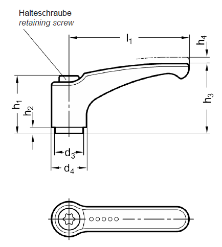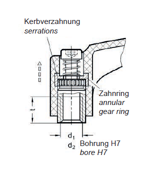 | Besonderheit: | Feststellen durch selbstständiges Einrasten, mit Bohrung, mit Innengewinde |