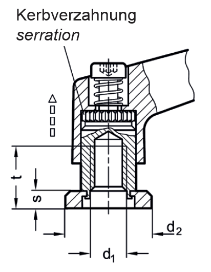 | Besonderheit: | Feststellen durch selbstständiges Einrasten, mit Auflagescheibe, mit Innengewinde, mit Innensechskant |
