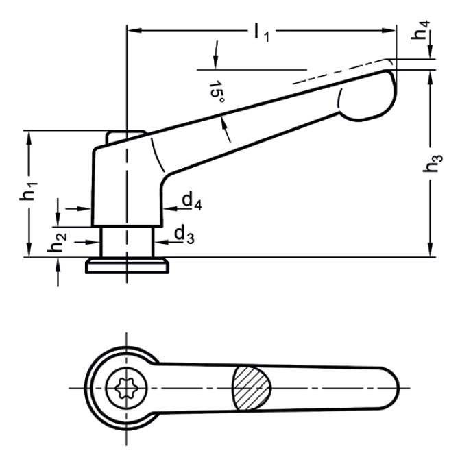 Durch Anheben (Ziehen) des Griffes wird die Kerbverzahnung frei und der Klemmhebel