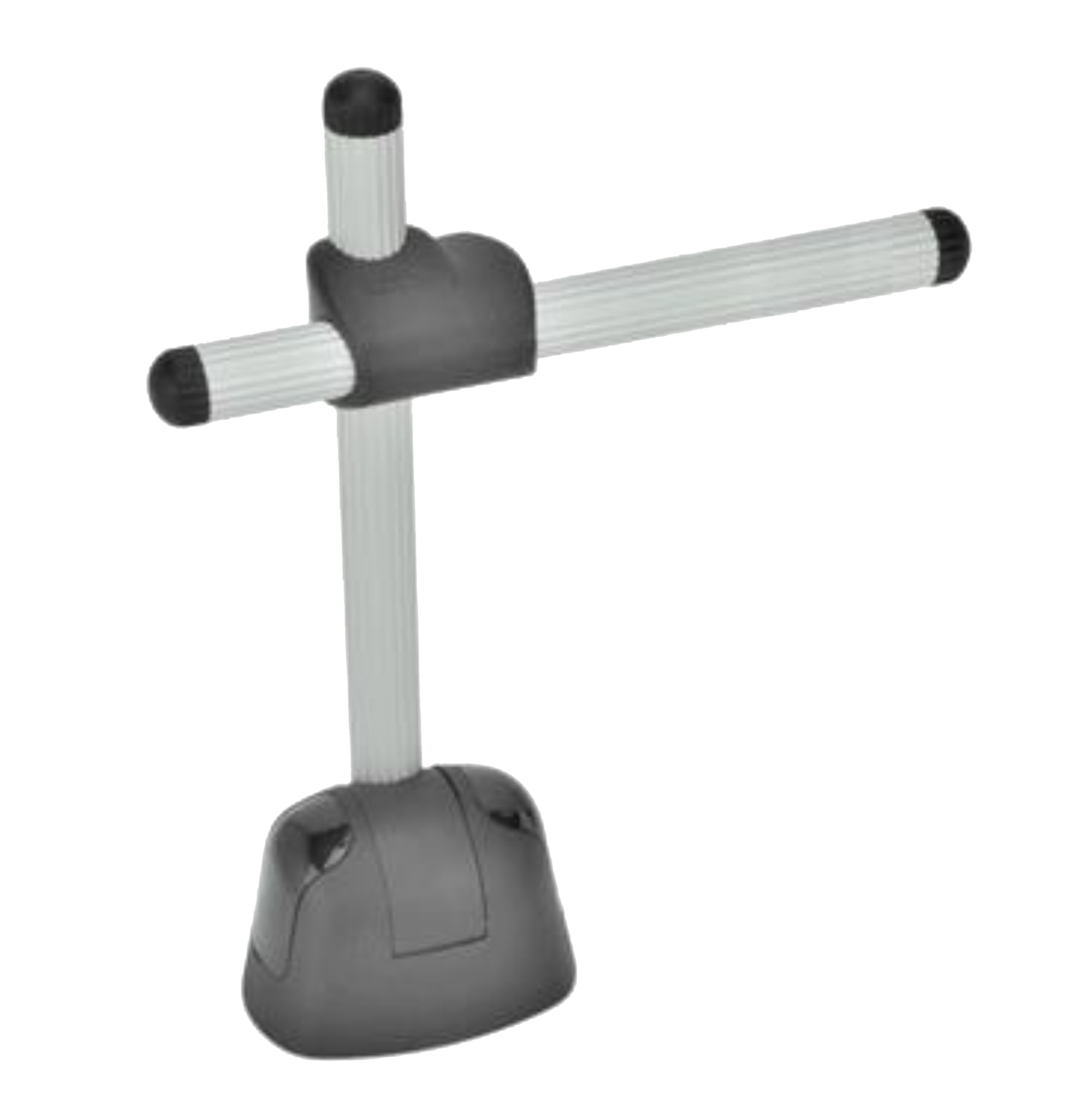 Mit jeweils nur einer Klemmschraube (Innensechskant) werden Sockel, Kreuzstück und Befestigungslasche SM 1760-1 an den Halterrohren in der gewünschten Position festgeklemmt.