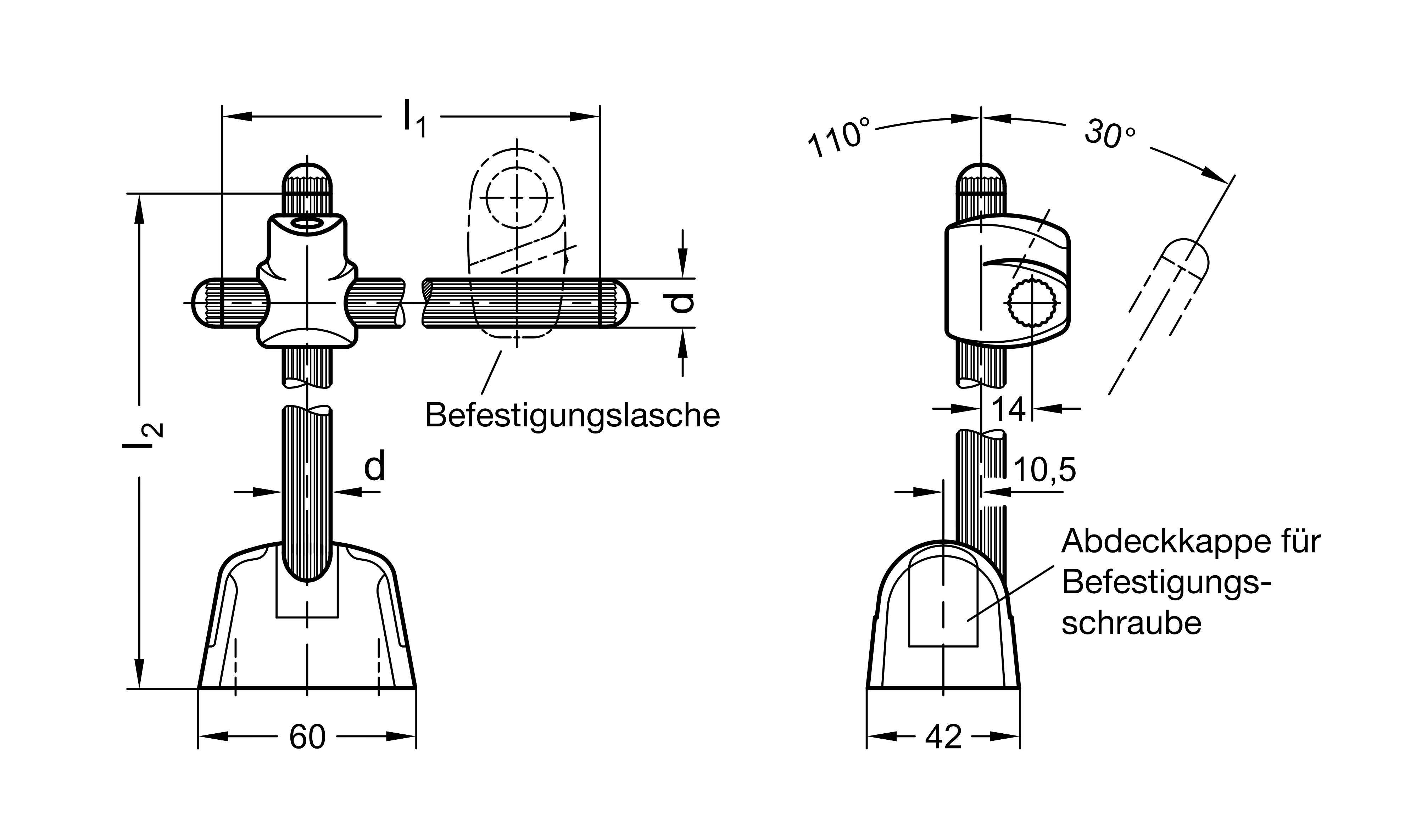 Befestigungslasche (siehe SM 1760-1): Kunststoff (Polyamid PA), schwarz, matt