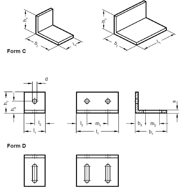 Form D sind in Abhängigkeit der Länge l1 mit 2 oder 4 Bohrungen versehen.