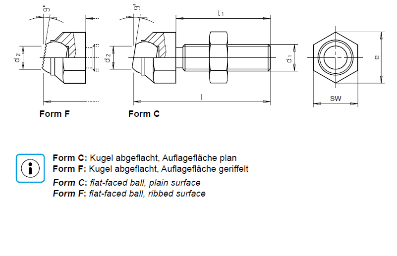 | Besonderheit: | Auflagefläche geriffelt, Auflagefläche plan, Kugel abgeflacht, mit Gewindestift |