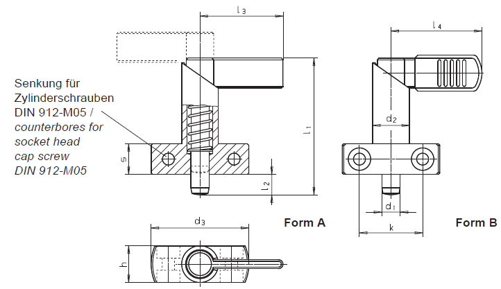 mit oder ohne Kunststoff-KappeMaterial:Druckfeder: Edelstahl rostfrei 1.4310Kappe: Kunststoff (PA), schwarz mattST: StahlFührung: Stahl, brüneirtRaststift: Stahl, nitriertRiegel: Stahl, gesintertNI: Edelstahl rostfreiFührung: 1.4305 Raststift: 1.4305Riegel: 1.4404, gesintertForm A: ohne Kontermutter, ohne PVC-KappeForm AK: mit Kontermutter, ohne PVC-KappeForm AN: ohne Kontermutter, ohne PVC-KappeForm AKN: mit Kontermutter, ohne PVC-KappeForm B: ohne Kontermutter, mit PVC-KappeForm BK: mit Kontermutter, mit PVC-KappeForm BN: ohne Kontermutter, mit PVC-KappeForm BKN: mit Kontermutter, mit PVC-KappeRoHS-konform: jaRastriegel werden eingesetzt, wenn der Raststift zeitweise nicht vorstehen darf.Durch Drehen des Riegels um 180° wird der Raststift eingezogen und durch eine Rastkerbe in beiden Stellungen gehalten. Eng tolerierte Raststiftführung.Ausführung mit Regelgewinde und mit Feingewinde.