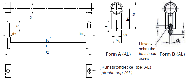 Große Grifflängen bzw. Belastungen können weitere Abstützungen erforderlich machen. Einzelne Abstützungen für Rohrgriffe Ø 28 (Form A) auf Anfrage.