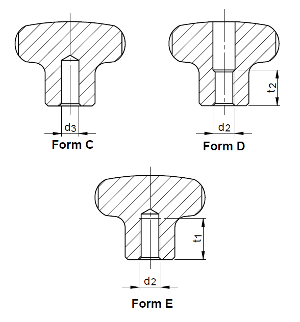 aus Gusseisen mit Bohrung / Innengewinde Material: Gusseisenentgratet und gleitgeschliffen Form A: Rohteil, ohne BohrungForm B: durchgebohrt H7Form C: Sackloch H7Form D: Gewinde-DurchlochForm E: Gewinde-SacklochSterngriffe SM 1205 nach DIN 6336 sind ergonomisch geformt und gut handhabbar.Sie ermöglichen eine sichere und ergonomische Kraftübertragung beim Spannen, Lösen oder Verstellen technischer Vorrichtungen.Aus Gusseisen hergestellt sind sie stabil, hoch belastbar, gegen viele Umwelteinflüsse resistent und kostengünstiger im Vergleich zu anderen Griffen aus hochfesten Materialien wie Stahl und bieten dennoch eine gute Leistung in vielen Anwendungen.RoHS-konform: jaEinige Angaben auf dem DATENBLATT (u. a. Werte für t2 in der Tabelle) sind nicht mehr aktuell.Überarbeitung folgt.