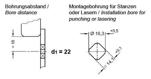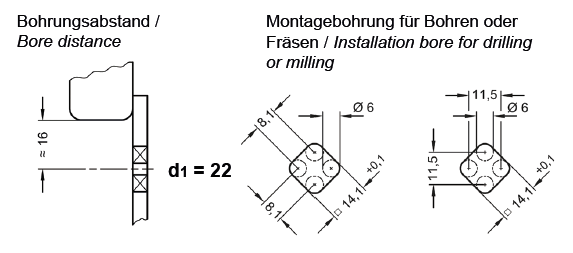 Für die sichere Funktion der Dichtringe müssen die Montagebohrungen am Gehäuse müssen rechtwinklig, gratfrei und ohne Fase ausgeführt werden.