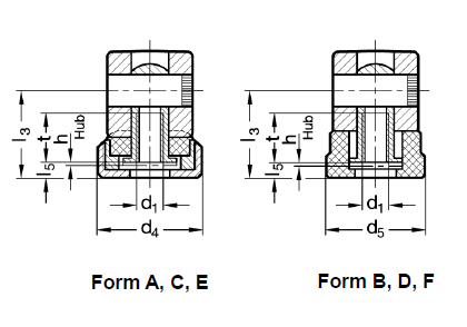 The eccentric clamps with adjustable support disc form A+C+E offer adjustment of the distance between the lifting eccentric and the clamping surface via a fine thread, thus enabling simple adjustment of the clamping position with the maximum clamping force.