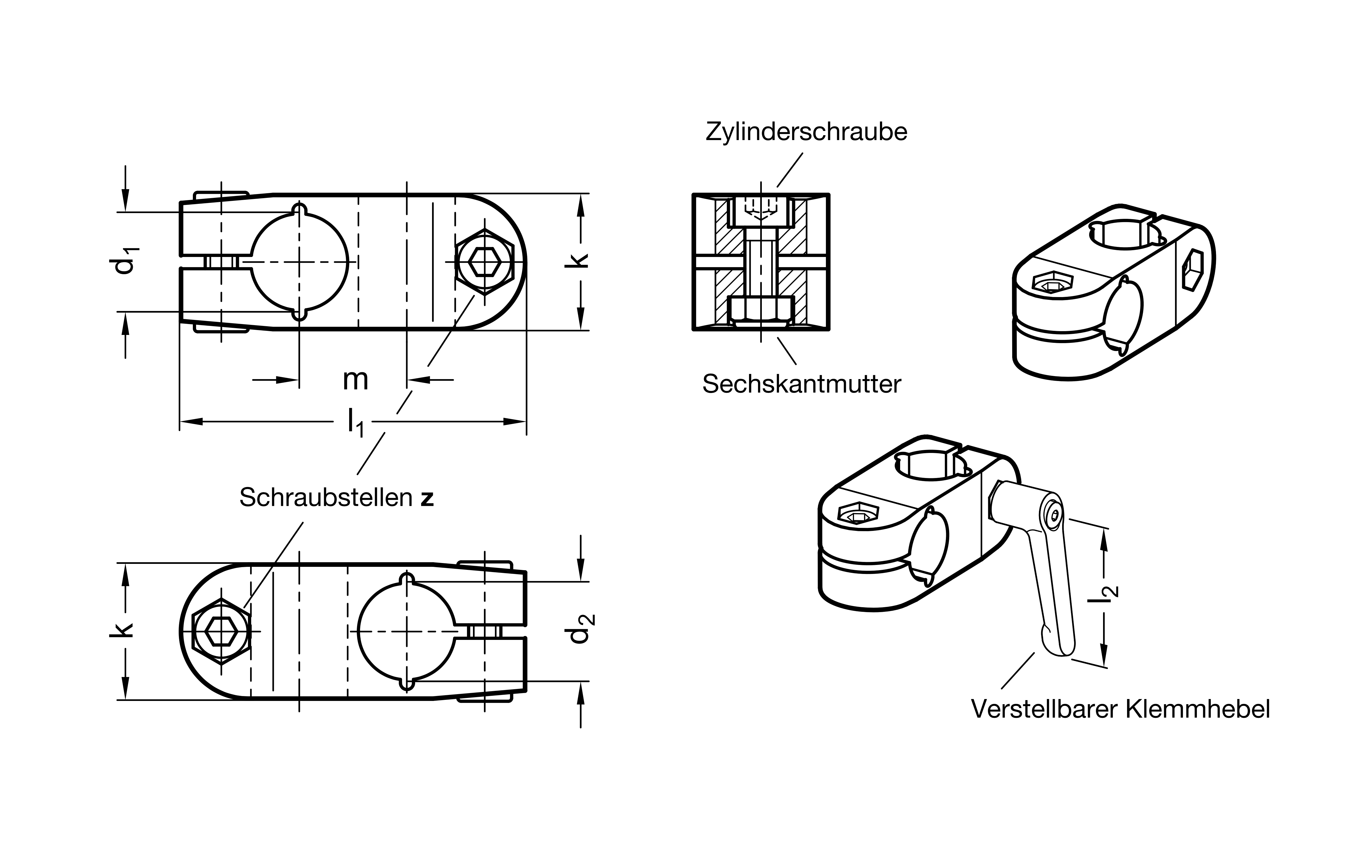 At the screw points z, the cheese head screws reduce the bore cross-section for clamping.
