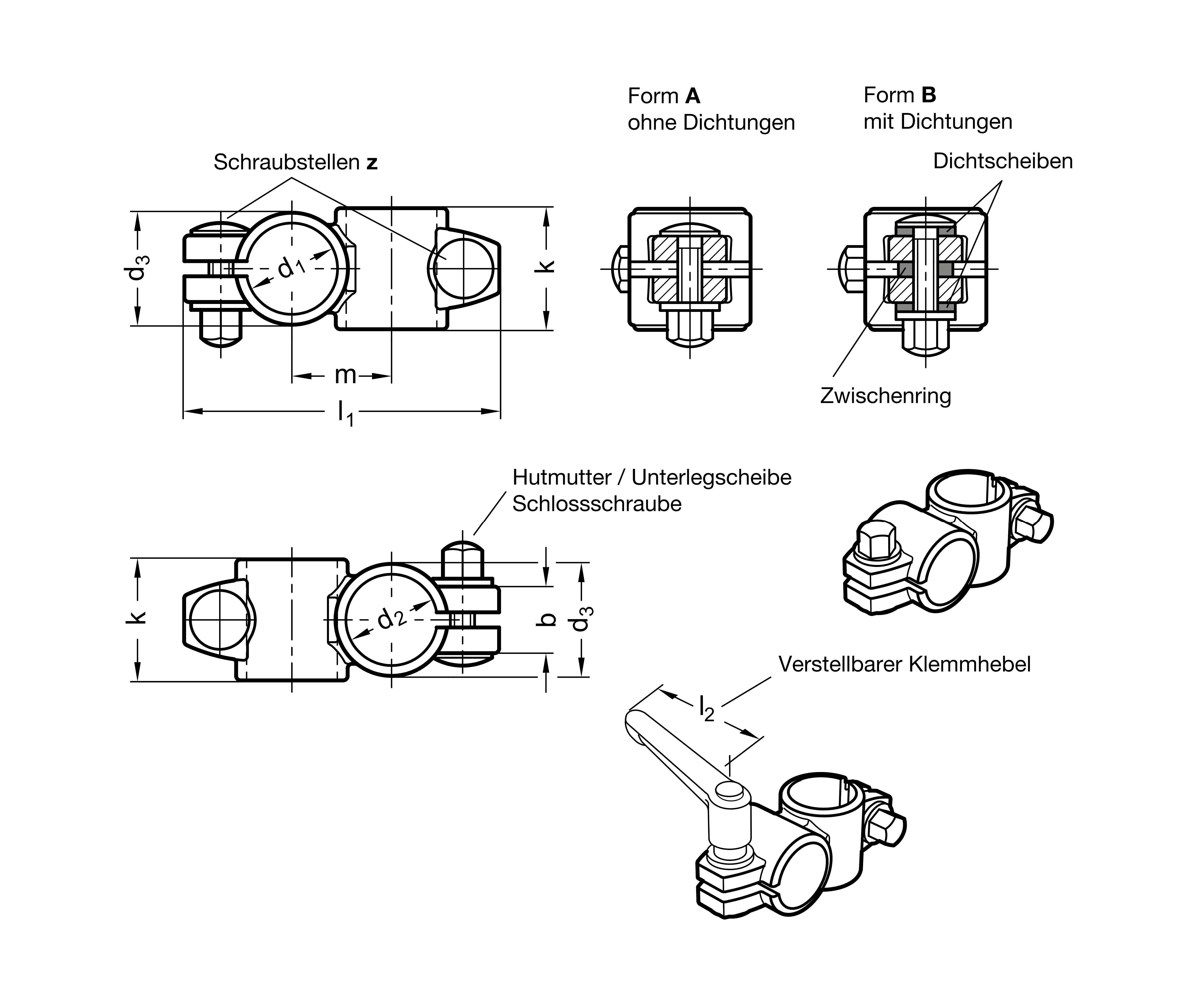 At the screw points z, the carriage bolts and cap nuts reduce the bore cross-section for clamping.