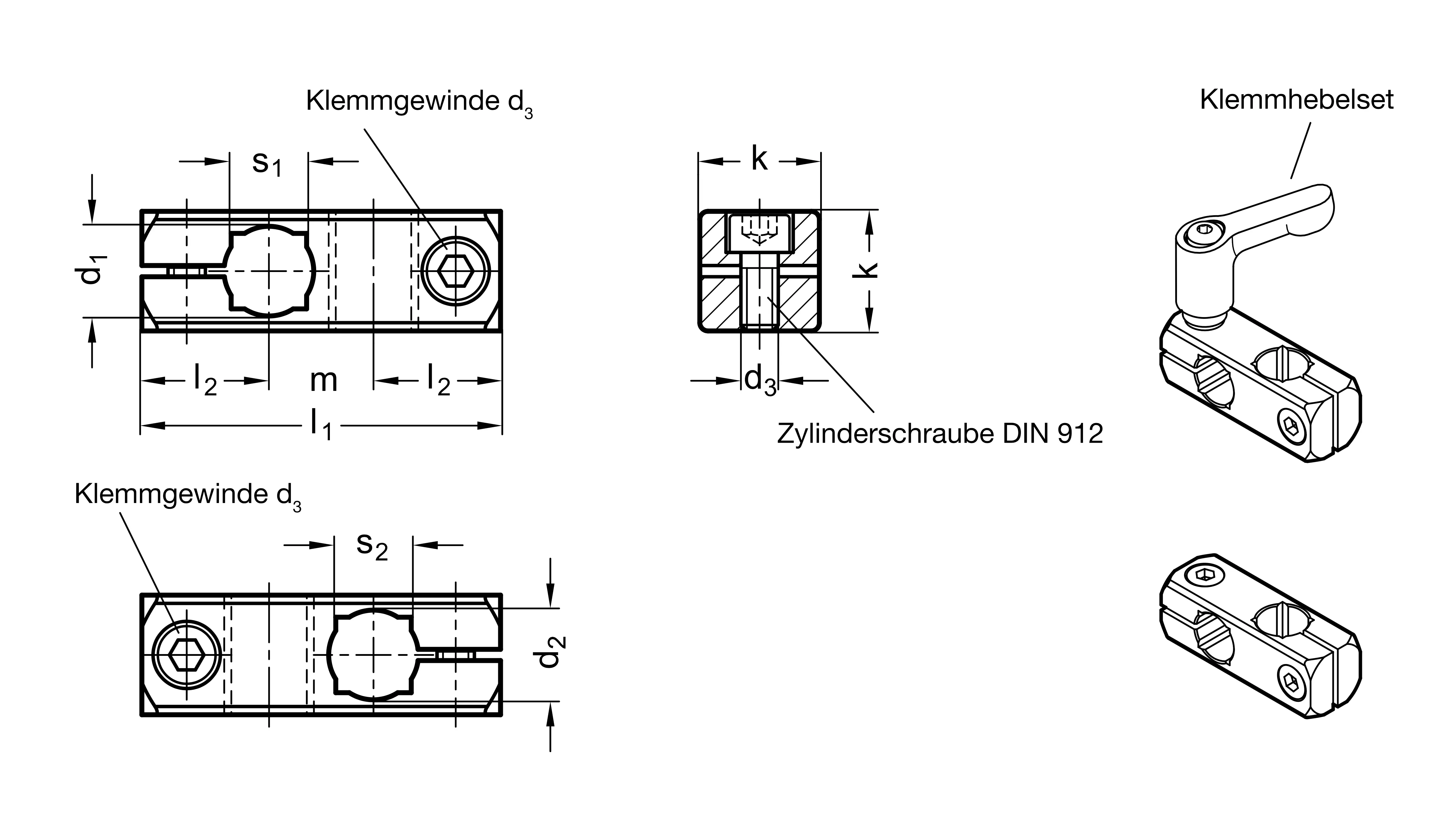 The standard version of the clamping screws are hexagon socket head cap screws DIN 912.