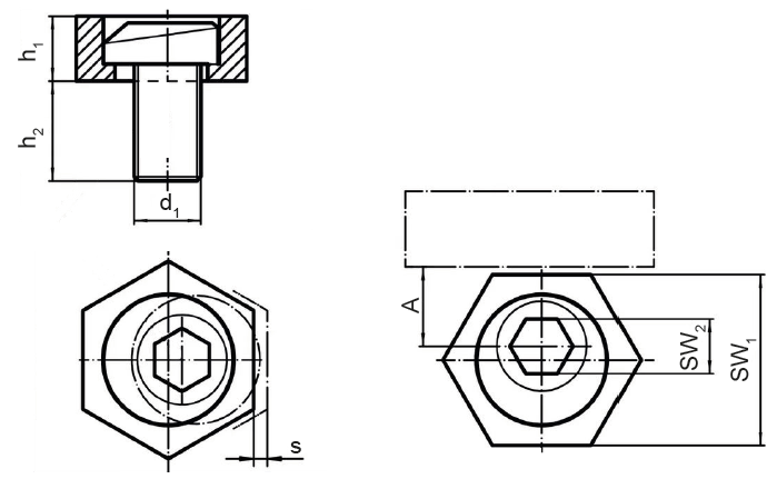 The head of the eccentric screw can protrude slightly