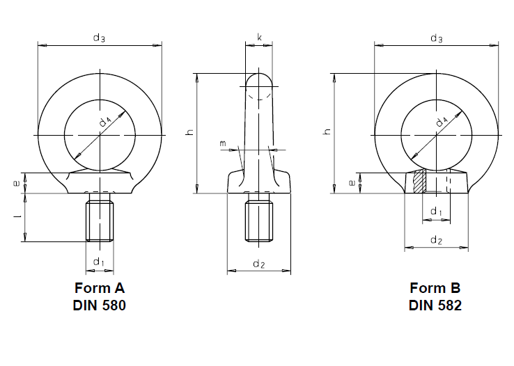 The DIN 580 eyebolts and DIN 582 ring nuts are primarily used as load-bearing devices for permanent