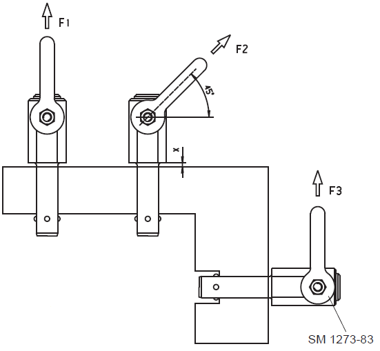 - The load values F1 / F2 / F3 (table in data sheet) apply to lifting in a steel mount and x min. = 1.5 mm.
