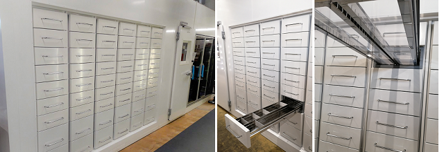 We manufacture drawer cabinets and shelving systems for the storage of medicines and laboratory samples. Depending on whether your items need to be stored refrigerated or non-refrigerated, whether they are slow or fast-moving items, we supply the optimum storage system with the highest possible compression for every application. Our experience, the functionality and quality of our products and the flexibility to realize customer-specific applications have been appreciated by our customers for many years.